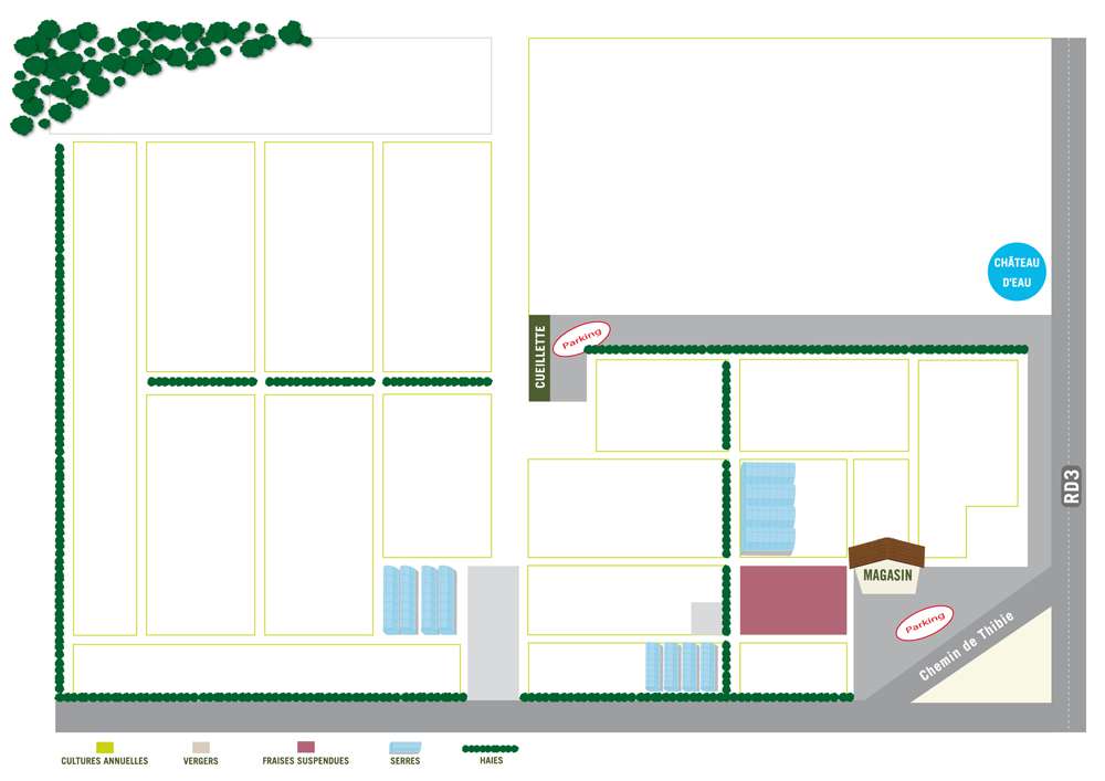 Les contenus des parcelles à cueillir sont sur le plan, et ceux des tunnels dans le tableau ci-dessous. Bonne cueillette !